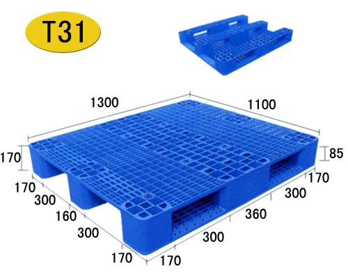 產(chǎn)品型號: HD-1311CW1 產(chǎn)品貨號: T31 產(chǎn)品外尺寸: 1300×1100×170mm 產(chǎn)品內(nèi)尺寸: 產(chǎn)品結(jié)構(gòu): 單面網(wǎng)格川字底型 產(chǎn)品內(nèi)容量(L): 承重量(T): 動載1.5T,靜載6T,貨架載0.6T 產(chǎn)品認(rèn)可標(biāo)準(zhǔn): ISO9001:2000質(zhì)量體系認(rèn)證 該塑料托盤適合平地墊倉、碼垛和上貨架使用;