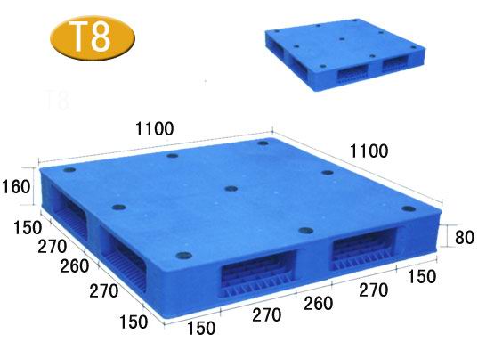 產(chǎn)品型號(hào): HD-1111SP2產(chǎn)品貨號(hào): T8 產(chǎn)品外尺寸: 1100×1100×160mm 產(chǎn)品內(nèi)尺寸: 產(chǎn)品結(jié)構(gòu): 雙面焊接平板面重型 產(chǎn)品內(nèi)容量(L): 承重量(T): 動(dòng)載1.5噸,靜載6噸,貨架1噸 產(chǎn)品認(rèn)可標(biāo)準(zhǔn): ISO9001:2000質(zhì)量體系認(rèn)證 此款塑料托盤(pán)適用平地墊倉(cāng)及碼垛使用,內(nèi)含5個(gè)螺栓,增加了托盤(pán)強(qiáng)度