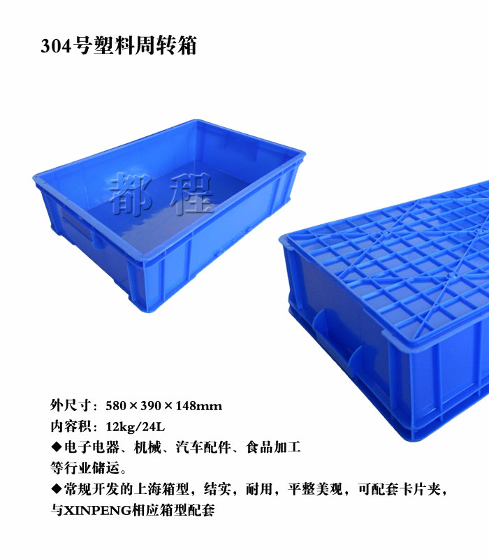 編號: X304 外尺寸(mm): 580*390*148 內(nèi)尺寸(mm): 536*356*142 內(nèi)容積(L): 24 備注: 適用于電子電器、機械、汽車配件、食品加工等行業(yè)。產(chǎn)品結(jié)實耐用,平整美觀,可配套卡片夾,與XINPENG相應箱型配套。
